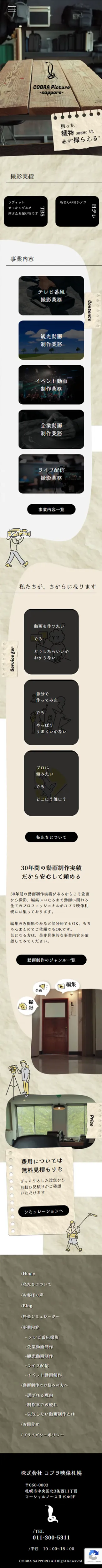 株式会社コブラ映像札幌様らしさでもある代表の人柄や想いが自然に伝わるよう、コーポレートサイトでありながらも人間味のある表現へとブラッシュアップを行っています。